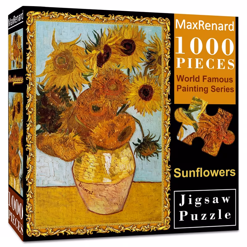 За љубителите на светската уметност, познатото дело на Ван Гог- Сончогледи. Составувањето е интерактивна лекција по ликовно и уметност, а завршената сложувалка е елегантна декорација за домот или канцеларијата.