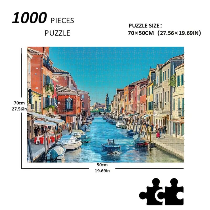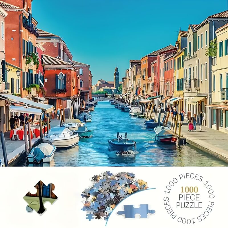 Сложувалка со 1000 парчиња Venice Canal Scenery Puzzle. Висококвалитетен материјал со прецизно сечење.